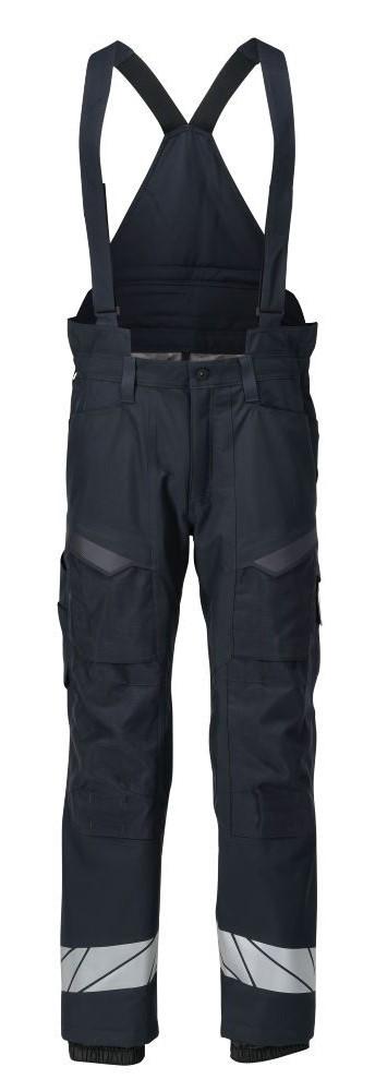 Vinterbyxa med andas funktion, metervara med hög slitstyrka, andasfunktion, vind- och vattentät. Med CLIMASCOT® Lightweight Insulation. Sömmarna är tejpade. Byxbenen är ergonomiskt formade. Bältesstroppar. Gylf med blixtlås. Fickor på framstycket. Bakfickor med lock. Dold hammarögla i båda sidorna. Tumstocksficka med Kevlar®-förstärkningar. Fickor med lock på framsidan av låret. Benficka med fodrad telefonficka, magnetstängning och inbyggd ID-kortshållare. ID-kortshållaren är avtagbar. Hängslen i kraftig resår kan justeras och tas av. Justerbara knäfickor i slitstark CORDURA® (500 D). Snölås invändigt i benen. Blixtlås med vindskydd på yttersidan av underbenen. Reflexer på benen.